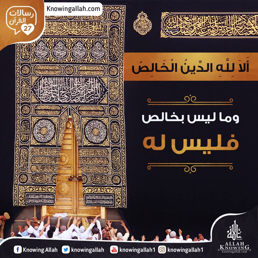 (أَلاَ لِلَّهِ الدِّينُ الْخَالِصُ!) وما ليس بخالص فليس له! وإنما هو لمن توجه إليه به صاحبه!.. ومعنى الخالص: النظيف الصافي على أكمل ما يكون الصفاء! كاللبن الصافي إذا لم يخلطه شيء ولو نقطة! كان لبنا خالصا، فإن وقع فيه شيء، ولو مقدار ذرة؛ فَقَدَ معنى كونه خالصاً!