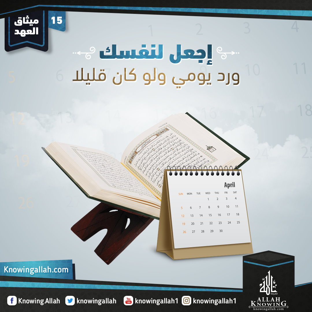 لك أن تختار من القرآن والسنة الصحيحة آيات وأذكار نبوية، تكون لك ورداً يومياً، تسلك من خلاله إلى الله تعالى، وتتعهد به قلبك حتى يدوم على نداوة الإيمان، ويستعين بها على الترقي بمدارج التعرف إلى الله ذي الجلال ؛ فيزداد إشراقاً بنور الرحمن!
