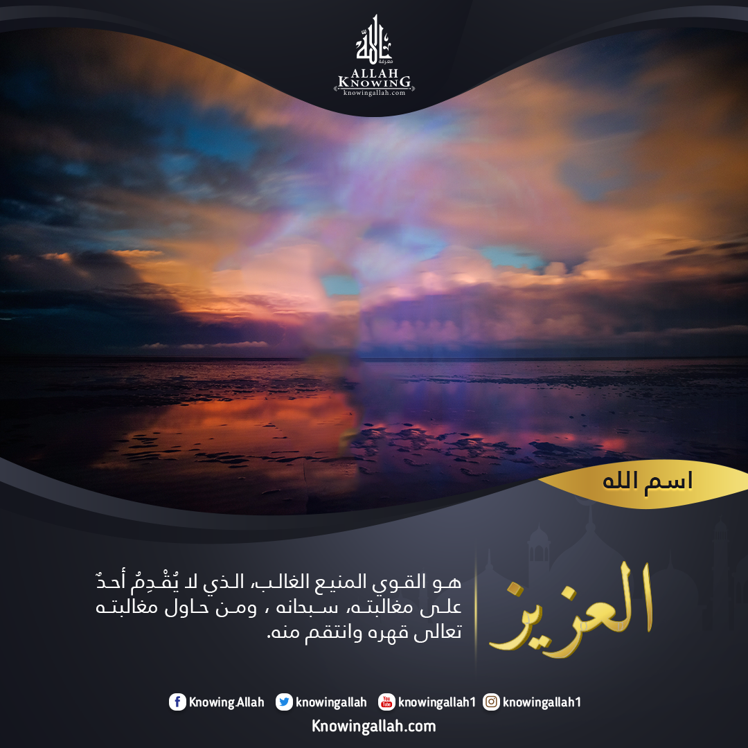 والله تعالى أخبر عن نفسه فقال أنه: ( الْعَزِيزُ الْحَكِيمُ) ( الْعَزِيزُ الْعَلِيمِ) ( الْعَزِيزُ الرَّحِيمُ) ( الْعَزِيزُ الْغَفَّارُ) ( الْعَزِيزُ الْغَفُورُ) ( الْعَزِيزُ الْوَهَّابِ) ( الْعَزِيزُ الْجَبَّارُ) ( الْعَزِيزُ الْحَمِيدِ) ( عَزِيزُ مُقْتَدِرٍ) (قَوِيٌّ اعَزِيزُ) ( عَزِيزُ ذُو انتِقَامٍ).