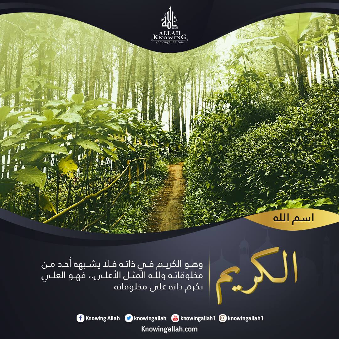 1ـ هو الكريم في ذاته، فلا يشبهه أحدٌ من مخلوقاته، ولله المثل الأعلى، فهو العلي بكرم ذاته على مخلوقاته .