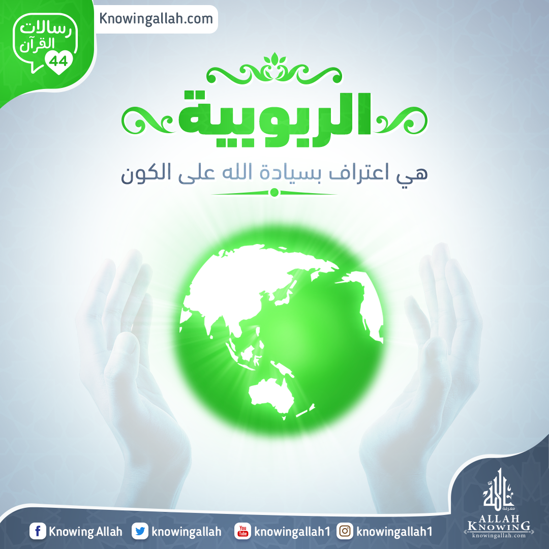 إن توحيد الربوبية هو اعتراف بسيادة الله على الكون والخلق أجمعين، اعترافا يتضمن الرضى به ربا وسيدا، والإيمان بما له تعالى من صفات الجمال والجلال. فربوبيته سبحانه إنما تعرف من خلال صفاته تعالى؛ ولذلك فقد سمى عز وجل نفسه بأسمائه الحسنى، وطلب منا إحصاءها والدعاء بها؛ أي أن نوحده في إلهيته تعالى بها، وذلك باب العبادة. ومن هنا كان توحيد الإلهية موصولا بتوحيد الربوبية، وهو منطوق القرآن ومفهومه. قال تعالى: