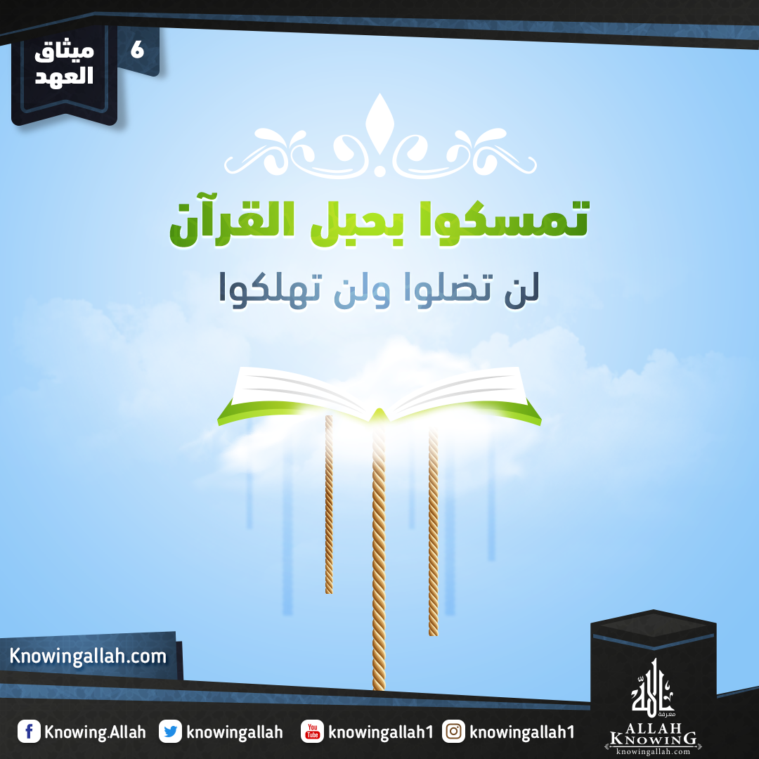 وفي قضية النجاة والهلاك، قال رسول الله صلى الله عليه وسلم: أبشروا.. أبشروا.. أليس تشهدون أن لا إله إلا الله وأني رسول الله؟ قالوا: بلى، قال: فإن هذا القرآن سبب ـ أي: حبل ـ طرفه بيد الله، وطرفه بأيديكم، فتمسكوا به، فإنكم لن تضلوا، ولن تهلكوا بعده أبداً!