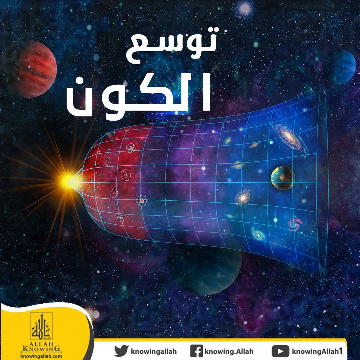 دأ الكون بالتوسع ولا يزال يتوسع حتى الآن، فجميع هذه المجرات تتباعد بسرعات كبيرة. وهذا ما نجد حديثاً عنه في قول الحق تعالى: